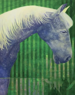 Clémentine Taupin est née en 2001, la même année où Gérald Panighi a été diplômé de la Villa Arson, école qu’elle a elle aussi fréquentée. Elle en est sortie diplômée en 2024. Fille et petite- fille d’agriculteurs, elle porte en elle l’urgence d’une exploitation familiale en quête de repreneur. Si elle n’a pas repris le travail de la terre, la peinture a pris le relais. Ses œuvres témoignent d’une transmission intergénérationnelle des gestes ancestraux, confrontés à l’agriculture contemporaine. Sa palette dissonante : verts acides, chairs pastel, taches fluorescentes pense la ruralité comme un écart aux clichés. Les tonalités violettes, nourries par la lumière des écrans, traduisent la contamination du regard numérique sur la mémoire rurale. Ses supports font appel à une autre génération paysanne. Elle répare, rapièce, réutilise les tissus transmis d’un héritage maternel. Rapiécés de leurs mains puis des siennes, ces textiles deviennent des surfaces chargées. L’artiste est actuellement résidente à La Station.