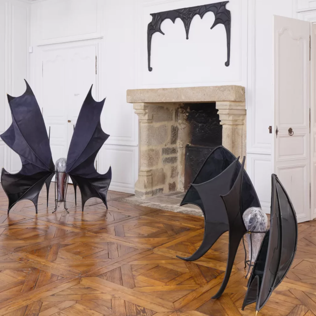 Dans le cadre des Résidences d’artistes de la Fondation d’entreprise Hermès, la designeuse Jenna Kaës a collaboré avec les artisan·es de la Maroquinerie de la Tardoire (Charente) pour créer Fadets, une série de quatre sculptures mêlant cuir, verre soufflé et laiton. Inspirée par les mythes locaux et la figure de la chauve-souris, l’artiste donne vie à des êtres hybrides et mystérieux. Présentées au musée de Rochechouart, ces œuvres témoignent d’un dialogue poétique entre savoir-faire artisanal et imagination contemporaine.