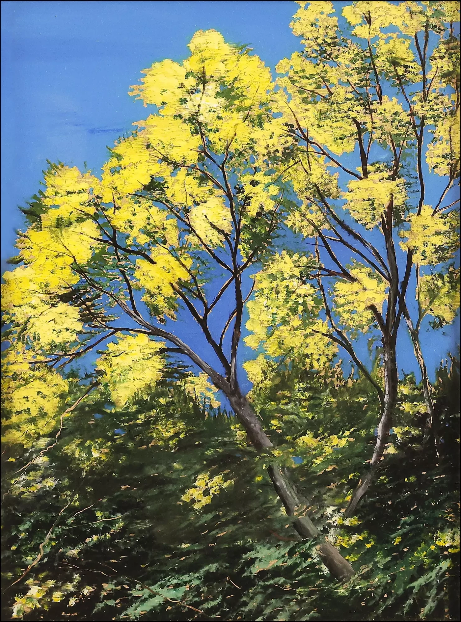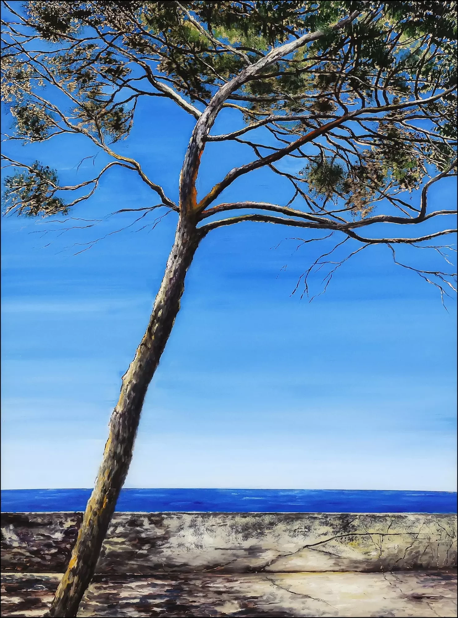 L’exposition « Mémoire du Sud » est une invitation au voyage sensoriel à travers les souvenirs d’enfance de Geneviève Garcia-Gallo. Spécialiste de la technique exigeante du fixé sous verre, l’artiste capture l’essence du paysage méditerranéen : des agaves sculpturales aux pins flamboyants, en passant par l’ivresse du mimosa. Sa palette, riche de « tous les verts de la terre », fait fusionner le bleu des horizons et l’or de la lumière pour recréer une nature vibrante, presque organique, où le regard se perd entre ciel et mer.