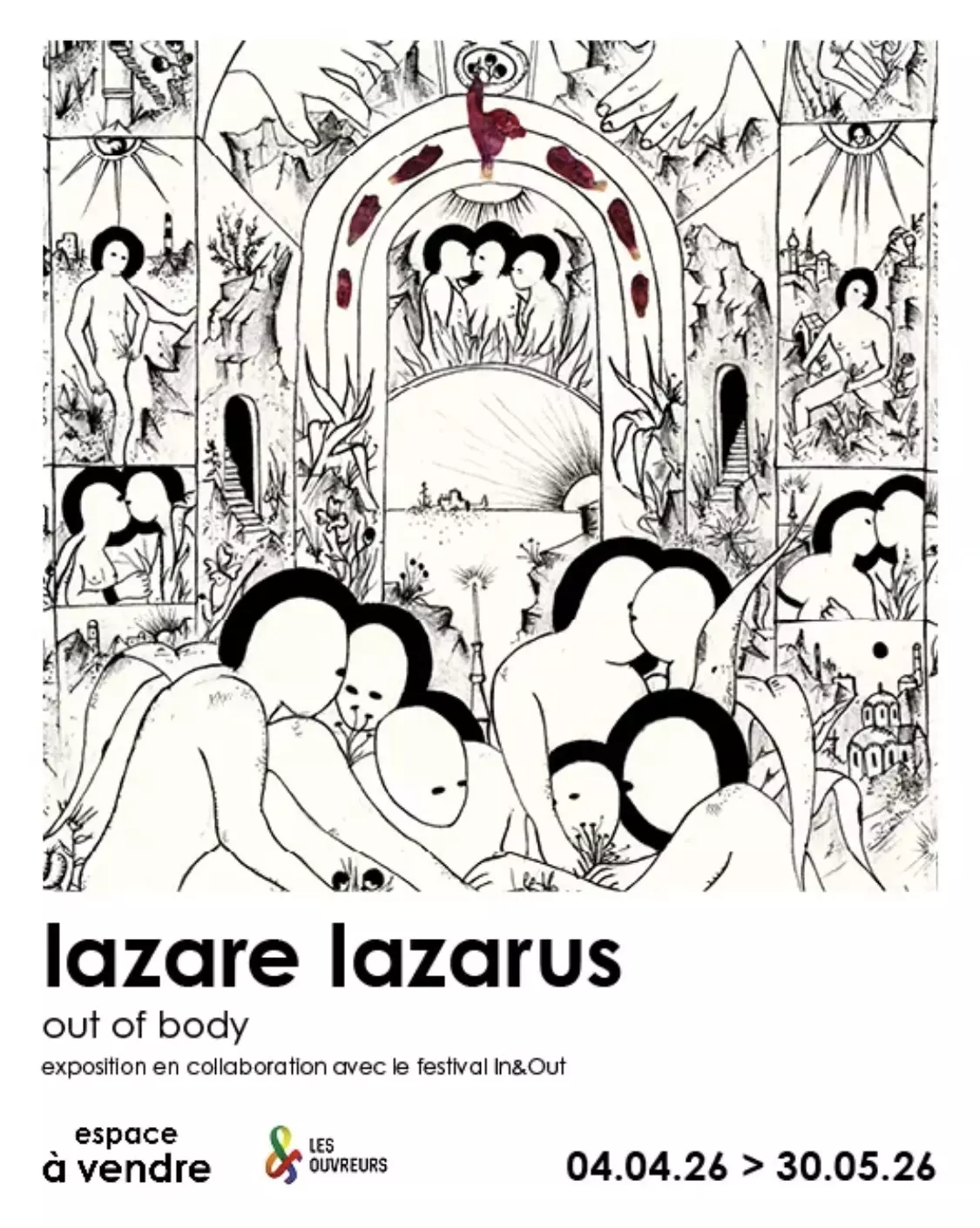Cette exposition est présentée en partenariat avec Les Rencontres In&Out, festival du film queer de Nice, auxquelles les 4 artistes ont déjà participé. Pour cette 18e édition (du 23 avril au 4 mai), c’est Lazare Lazarus qui en a crée l’affiche officielle.