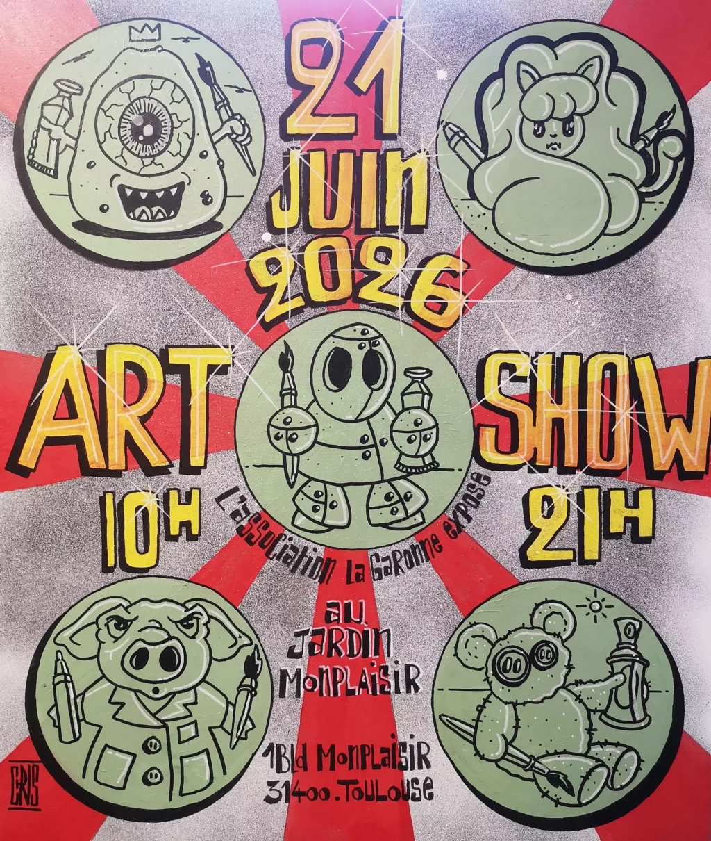 Évènement artistique Art show Association la Garonne exposé,organise une journée d'exposition collective au jardin Monplaisir ! TOULOUSE - Occitanie 21 juin 2026 – 21 avril 2026